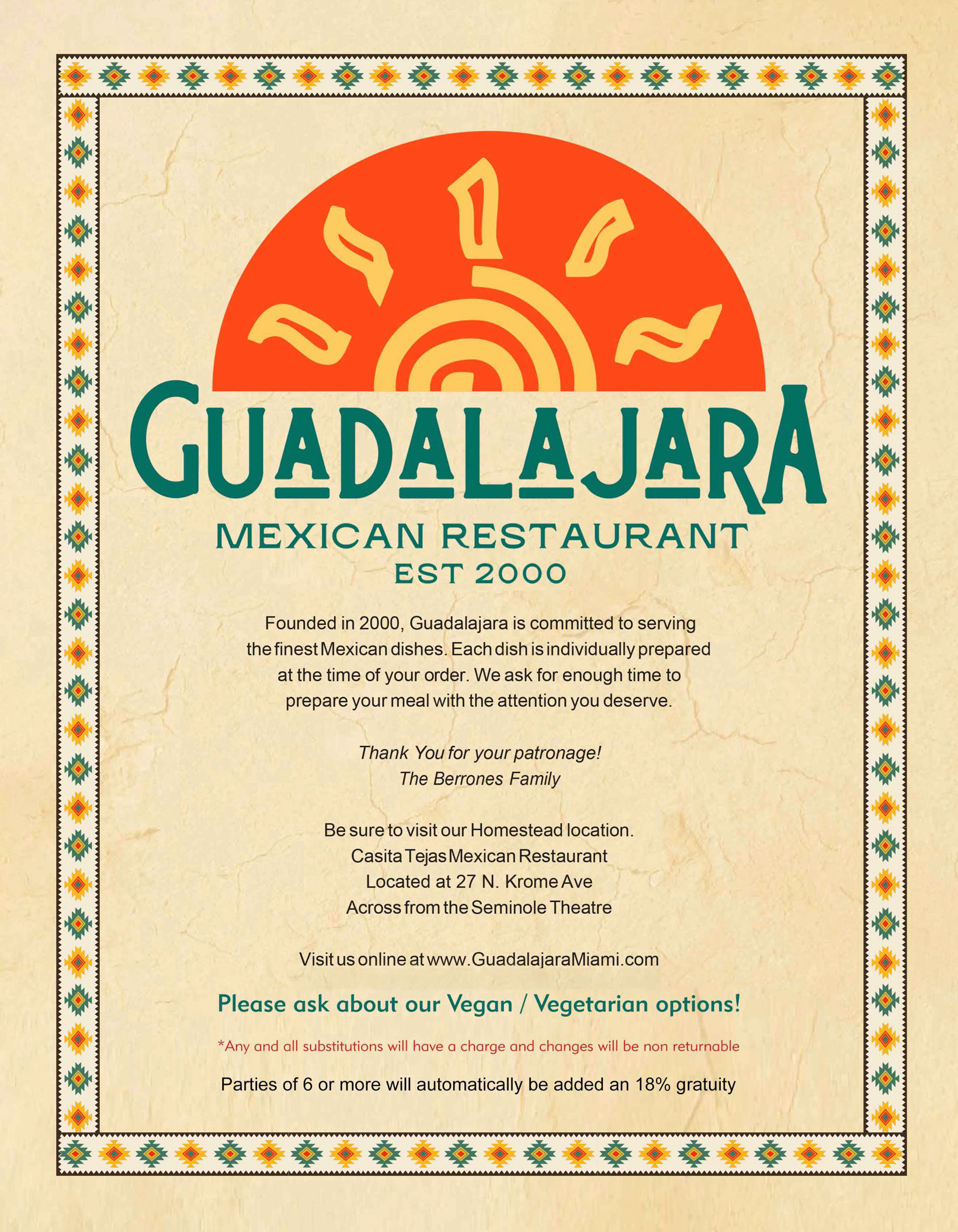 Looking for more bold Tex-Mex and hometown charm? Head over to our sister spot, Casita Tejas, serving Homestead since 1987—just minutes from the Everglades.